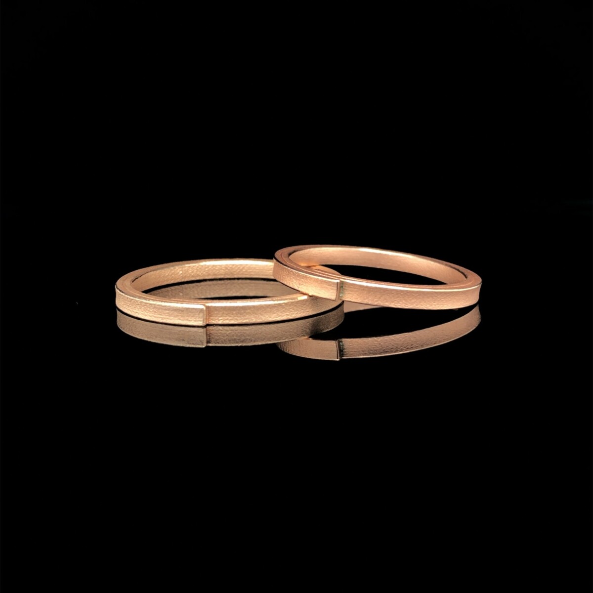 "Von oben betrachtet ist der Galaxie-Ring ein matter Ring mit der Besonderheit, dass die Ringschiene ganz leicht nach innen gewölbt ist und nicht nach außen, wie bei den meisten Trauringmodellen.
