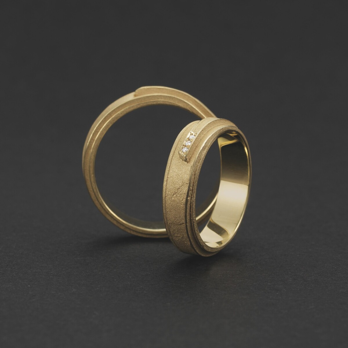 Durch die Verwendung einer speziellen Technik entstehen bei diesem Ring Oberflächenstrukturen in unterschiedlichem Ausmaß, die den Unikatcharakter unterstreichen und den Ring lebendig erscheinen lassen.